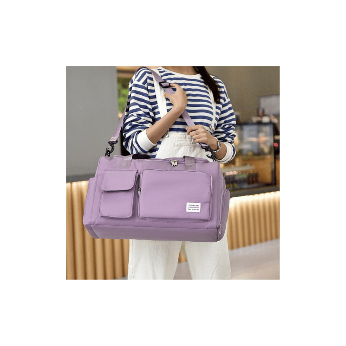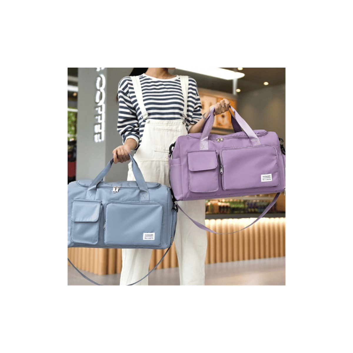 Com design moderno, cores sofisticadas, possui 2 bolsos externos, armazenamento independente para calçado, bolso para roupas molhadas/sujas.